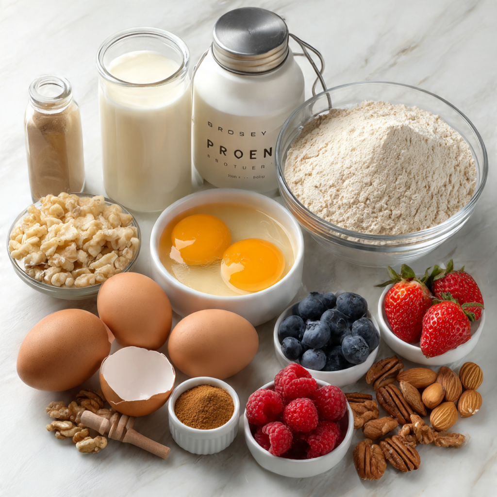 The Protein Pancake Base: The foundation combines eggs, Greek yogurt, and protein powder to create a nutrient-dense batter. This combination provides complete protein, probiotics from yogurt, and customizable flavor through protein powder selection. The ratio ensures proper texture—too much protein powder creates dryness, while insufficient protein reduces nutritional benefits.