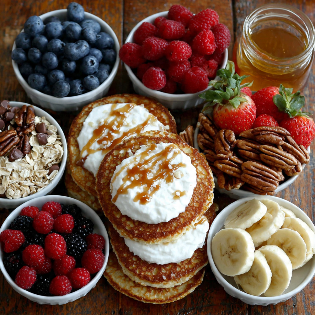 - Add Greek Yogurt: Top each pancake bowl with ¼ cup Greek yogurt, spreading gently to create a creamy layer.