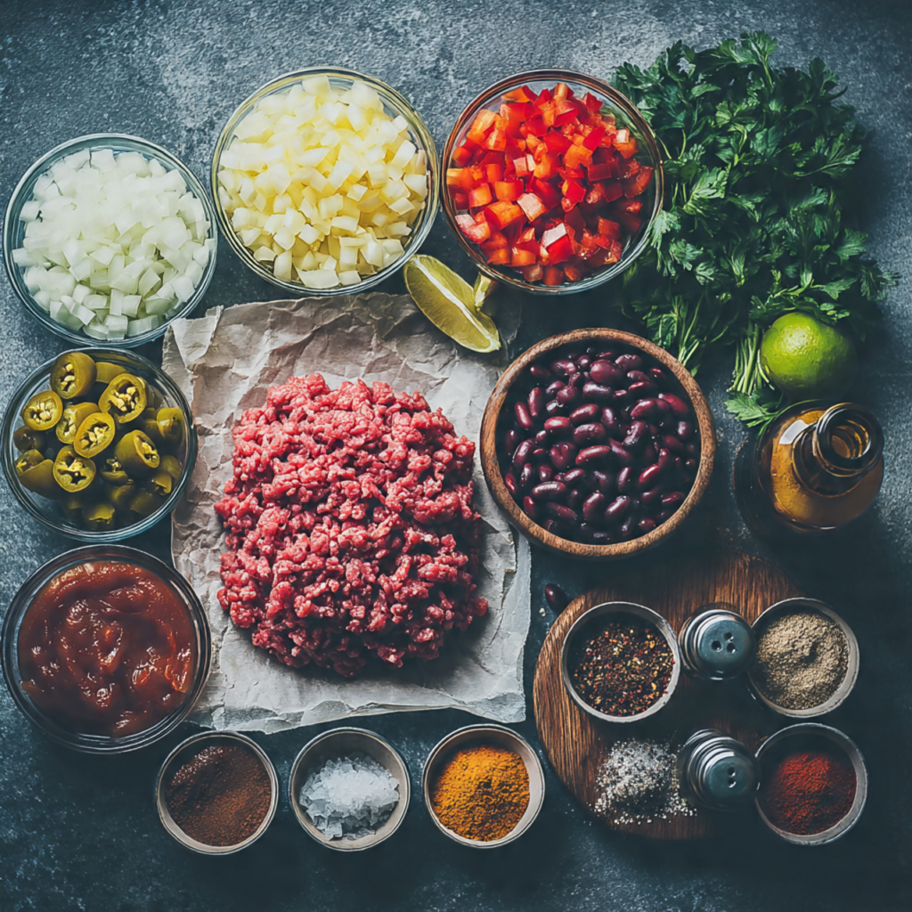 Prep vegetables ahead and store refrigerated in containers. Pre-mix spice blend in bulk for instant availability. Brown extra meat when making other dishes, freeze for quick chili starts. Use food processor for uniform vegetable chopping.