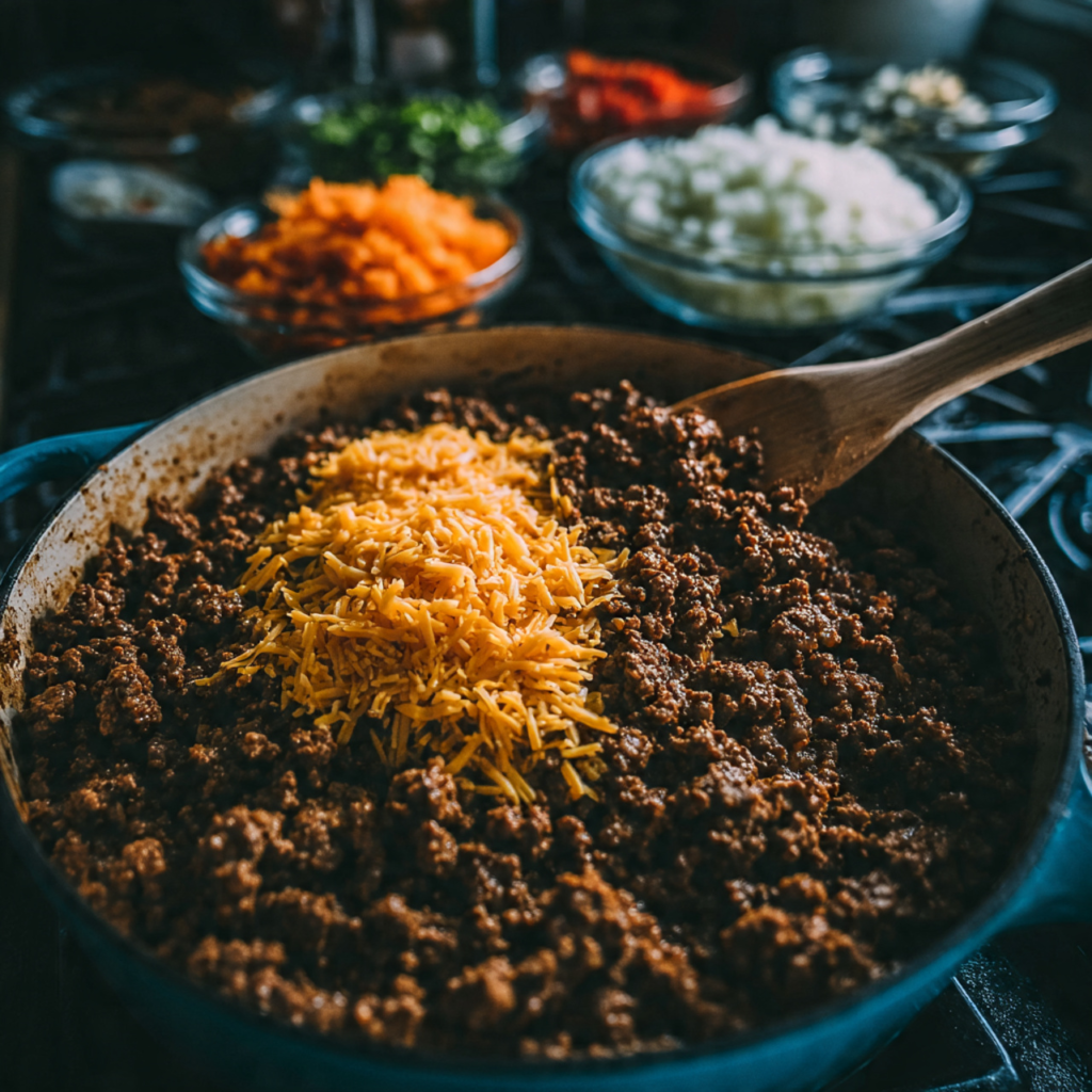 Break meat into smaller pieces but resist constant stirring initially. Let beef develop deep brown crust on bottom before stirring – this caramelization provides irreplaceable flavor depth. Season with salt and pepper during browning to draw out moisture and enhance browning. Once fully browned with crispy edges, transfer meat to plate, leaving rendered fat in pot.