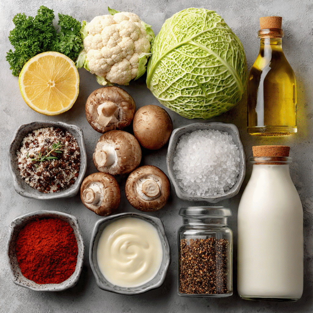 Ingredients for Oven Roasted Garlic Cabbage Steaks with Mushroom Salus