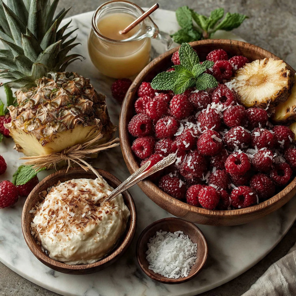 - Additional raspberries and pineapple wedges for decoration